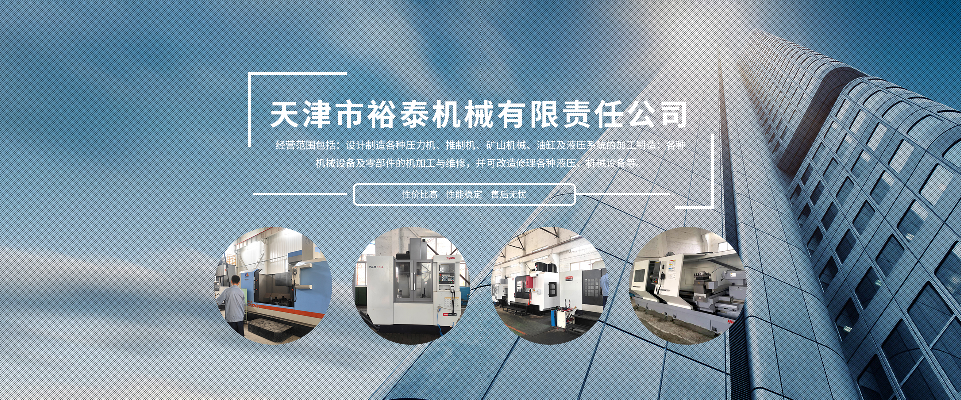 天津市裕泰機械有限責任公司成立于1998年,多次被區(qū)、鎮(zhèn)政府評為文明企業(yè),公司占地面積7500平方米,四個生產車間30多臺配套生產設備,經營范圍包括:設計制造各種壓力機、推制機、礦山機械、油缸及液壓系統(tǒng)的加工制造;各種機械設備及零部件的機加工與維修,并可改造修理各種液壓、機械設備等。經過不斷的努力創(chuàng)新我公司成為中國第一重型機械廠、第二重型機械廠、上海重型機械廠、首鋼、鞍鋼、南鋼、北京冶金自動化設計院、北京電力設備總公司等多家公司的加工基地,經合作我們產品也銷往德國、意大利、美國、日本、印尼等國家和地區(qū),并已在一些國家重點項目中使用。